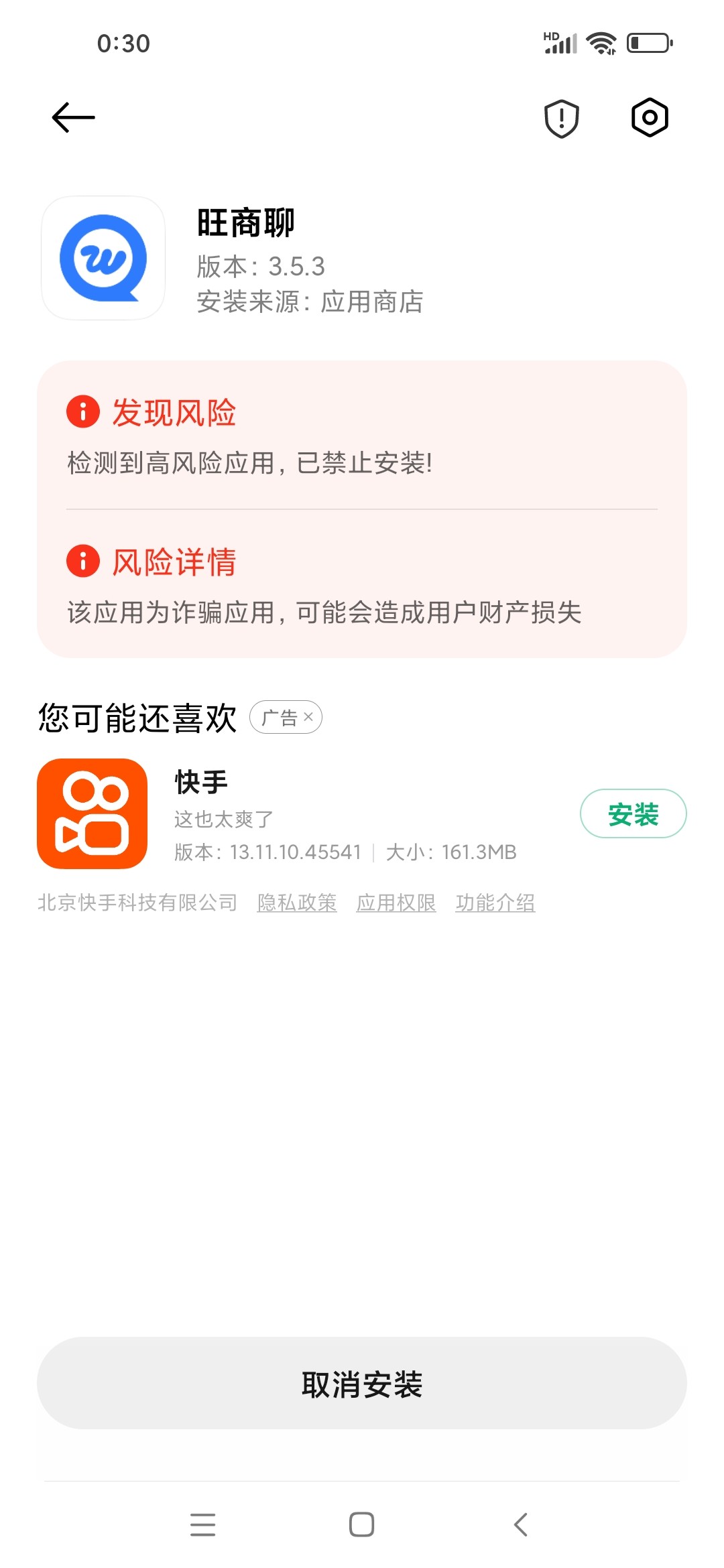 wcy520 旺旺聊,提示诈骗应用禁止安装。怎么超做呢