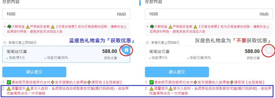 - 首存 35%,最高588,流水20倍(可不领取)