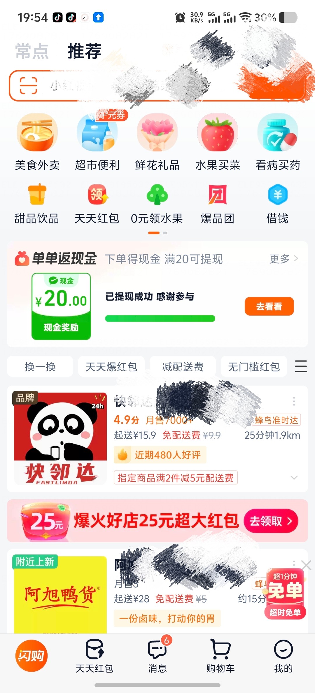 只是偶尔点外卖,登了下淘宝闪购(原饿了么)app,首页中间横幅有个20让我提现,我以为是要拉人那种的,点了一下20直接到账微信了,算你饿了么有良心了,终于知道干点人事儿了
