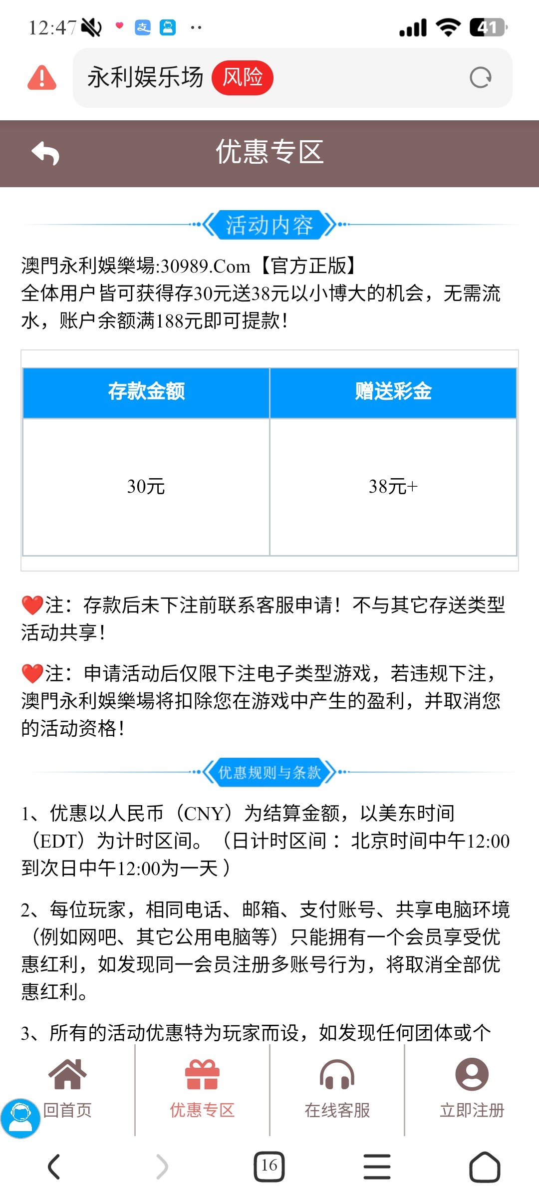 群友投稿首存30+38 风险自理