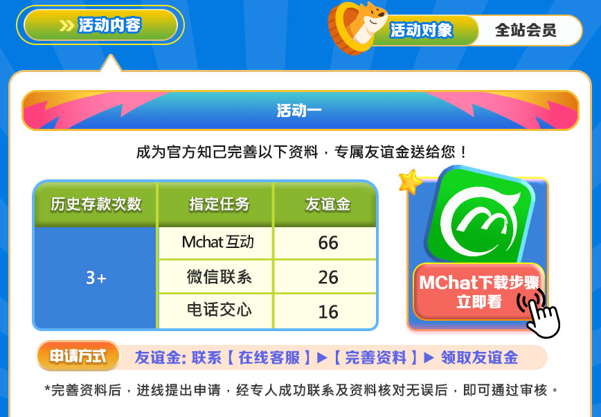 完成注册后,完善会员资料即可向客服申请彩金,最高可拿108。